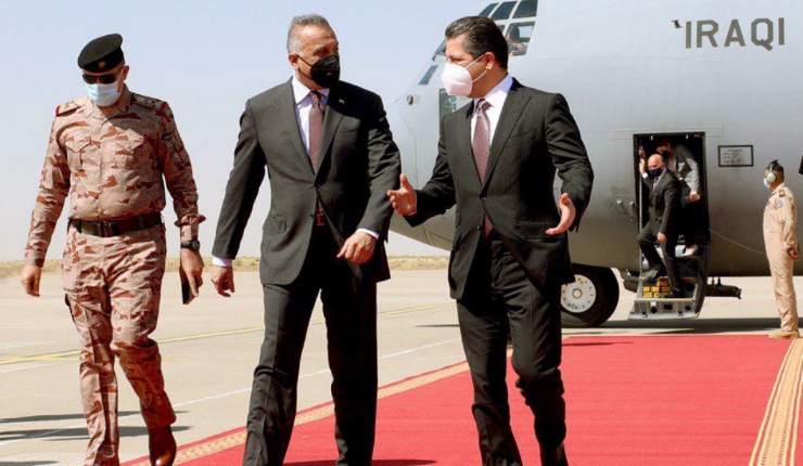 هەر ئەمڕۆ پێنج شەممە ، کازمی بە یاوەری شاندێکی باڵای حکومەتی عێراق ، کە هەریەکە لە جومعە عیناد ، وەزیری بەرگری عێراق و فوئاد حوسێن ، وەزیری دەرەوەی عێراق ، بە فرۆکەیەکی سەربازی ،کاتژمێری دەی بەیانی ، گەیشتە هەولێری پایتەخت و لەلایەن مەسرور بارزانی ، سەرۆک وەزیرانی هەرێم ، لە فرۆکەخانەی هەولێری نێودەوڵەتی ، پێشوازی لێکرا .